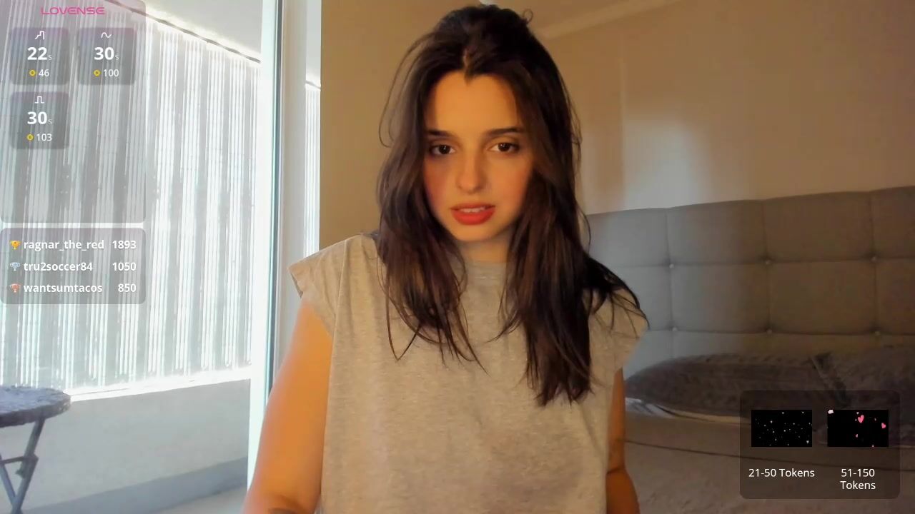 Flirtatious vibe dances freely in intimate chat video.