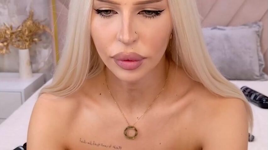 NickyAshcroft platinum blonde busty in black lingerie